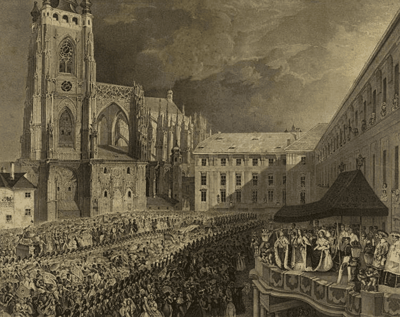 Po mszy para cesarska przejechała na białych koniach w kierunku Lateranu przy aplauzie i wiwatach publiczności, przy akompaniamencie setek dzwonów kościelnych, na uroczysty bankiet.
