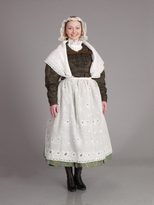 Женская одежда была значительно дороже. Во второй половине 19 в. она состояла из: чепчика, рубашки (каботка), кафтана (толубка, катанки), юбки, фартука, платка на плечах и обуви.